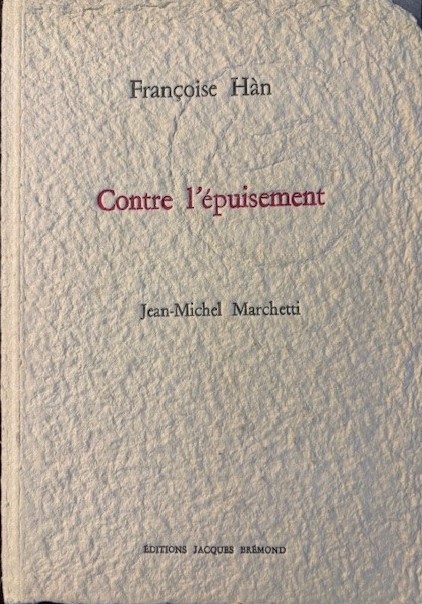 d’un oiseau, à l’aube au bord d’une fissure » (6). Notes 1. Cherchant à dire l’absence (1994), Lettre avec un fragment de bleu (1996), L’unité ou la déchirure (1999), Poésie, vitesse de libération de tous les corps (1999), Ne pensant à rien (2002), Une feuille rouge (2004). Ce recueil posthume contient un fragment inédit : « Le premier matin du monde ». La pagination donnée ici est celle de Contre l’épuisement. Décédée 1er juillet 2020, Françoise Hàn avait néanmoins pu « revoir et corriger cet ensemble, publié avec son assentiment. » Il est accompagné d’encres originales de Jean-Michel Marchetti.2. Comment ne pas songer ici au poème de Bernart de Ventadorn, troubadour du 12e siècle, « Qan vei la lauzeta mover » ? : « Qan vei la lauzeta mover / de joi sas alas contra·l rai, / que s’oblid’ e-is laissa cazer / per la doussor c’al cor li vai, / ai ! Tan grans enveia m’en ve / de cui que veia jauzion, / meravillas ai car desse / lo cors de desirier no·m me fon. » (« Quand je vois l’alouette agiter de joie ses ailes face aux rayons [du soleil], s’oublier et se laisser choir dans la douceur qui au cœur lui vient, hélas ! une si grande envie me pénètre de ce bonheur que je vois, que je tiens à miracle si mon cœur ne se consume pas de désir »).3. Notation ancrée, chez Hàn, dans un réel pleinement écologique : trop de champs en monoculture intensive (engrais, pesticides, fauchages répétés…), d’où perte d’habitat pour les nids enfouis, d’où aussi plus guère de fleurs, d’où plus guère d’insectes à manger pour l’alouette des champs.4. On trouve même l’expression « larme de résine » (p. 69).5. « L’évolution a produit en nous l’inquiétude, comme chez d’autres la nageoire ou l’aile. » (L’évolution des paysages, Cadex, 2000, cité d’après Revue d’Art et de Littérature, Musique, nº 77, p. 45).6. Françoise Hàn, Profondeur du champ de vol, Nîmes, éd. Cadex, 1994, « Avant texte », p. 9.©Jacques Merceron |
