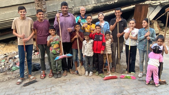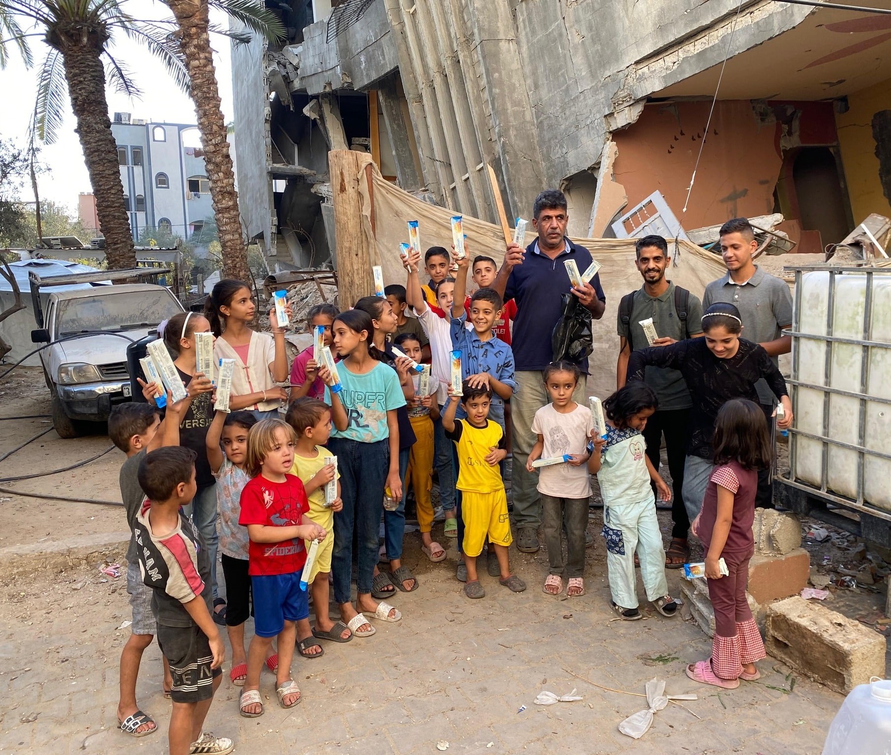 jeunes francophones de Gaza qui ont distribué des biscuits aux enfants