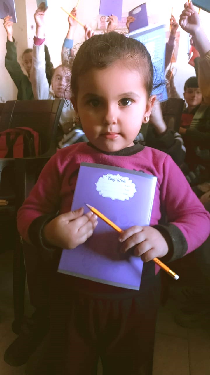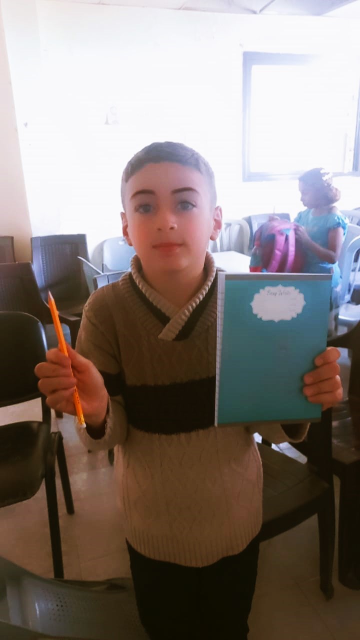distribué des cahiers et des crayons aux enfants de Gaza dans un centre